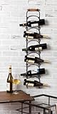 Rack features alternating loops that hold the trunk of the bottle parallel to the wall and wooden handle at the top of the fixture